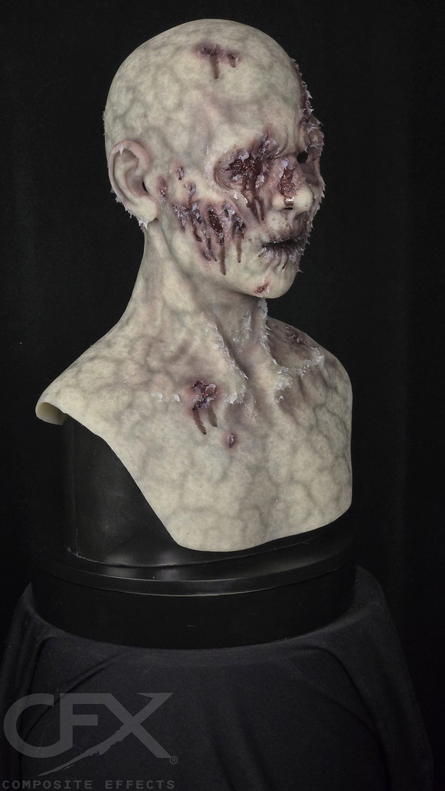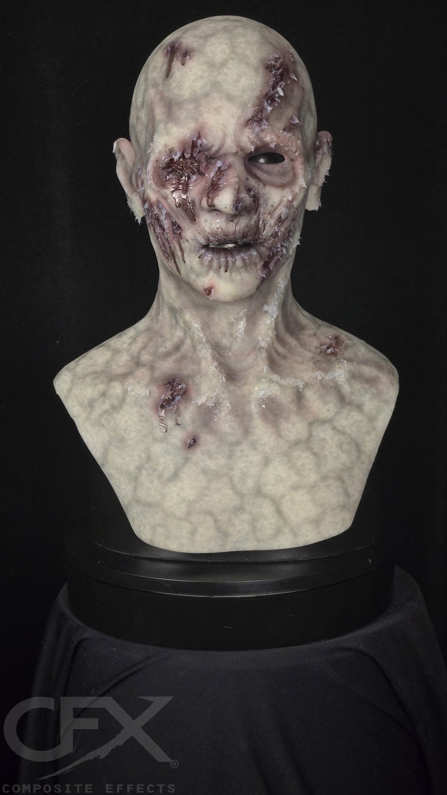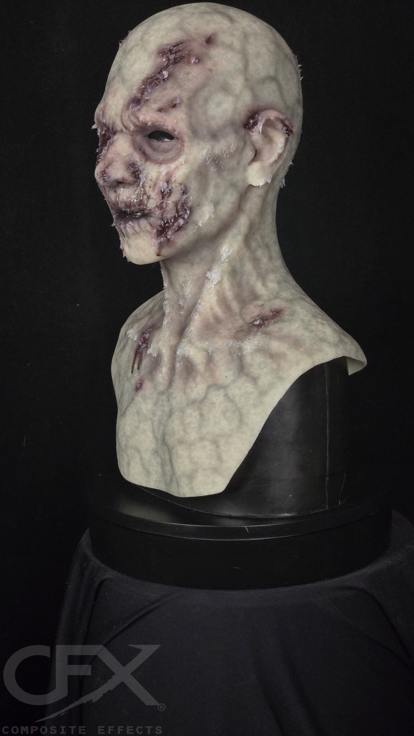 Still, this zombie can shamble with the best of them, regardless of how many walls she runs into. This addition to the undead family at CFX has a gouged, gory eye with the option to add gruesome maggots.