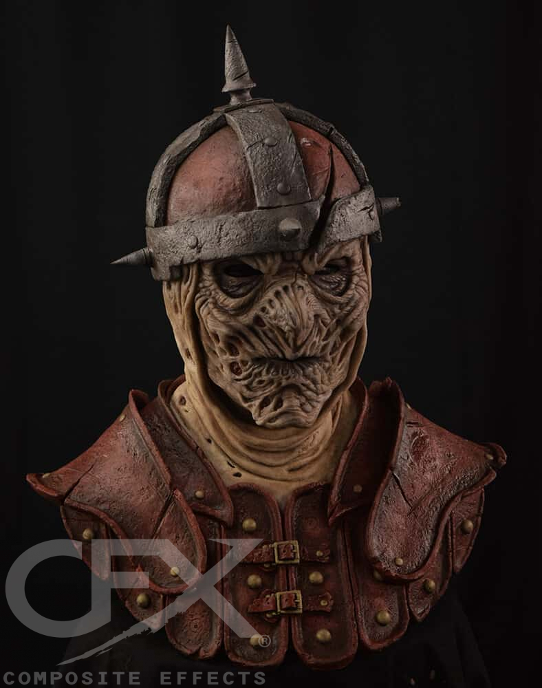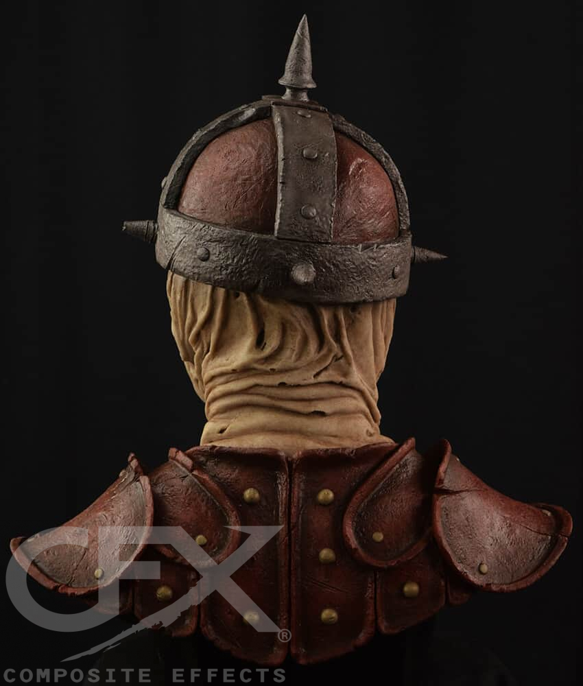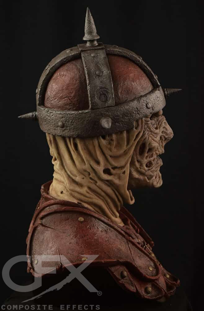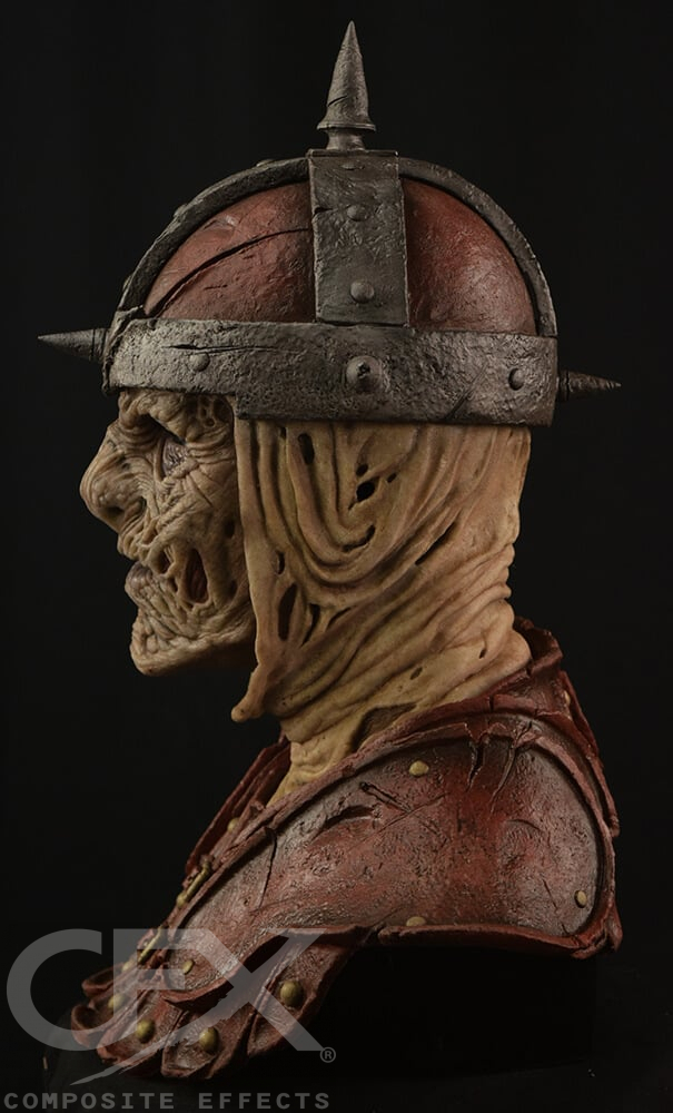 Dread Knight lumbers to the front of the line, standing side by side with his fellow zombie warriors! With an undead rotting face, realistic leather armor (made from silicone of course), and a slightly askew, damaged helmet, this guy is sure to be the most prepared member of your zombie army!