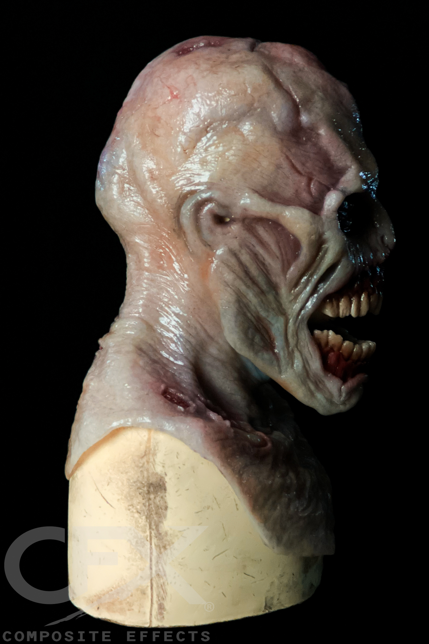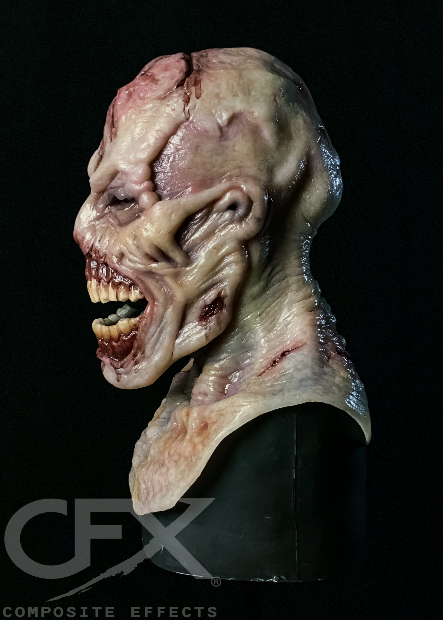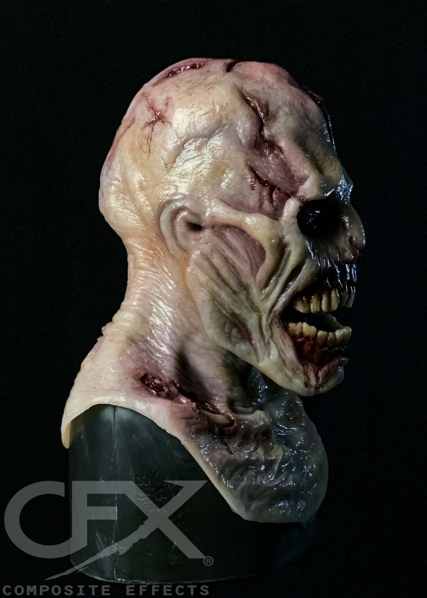 The Scourge is designed with an enlarged jaw feature and additional under the jaw strapping to allow the wearer to over exaggerate its movement and get an impressive – and creepy! – range of motion! Balaclava is recommended.
