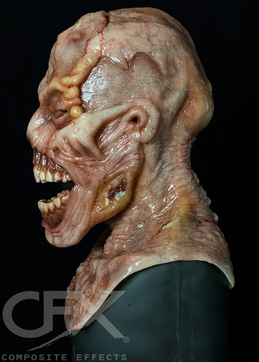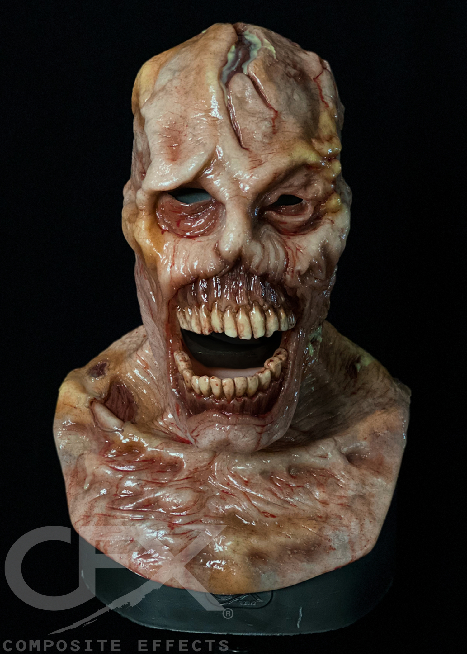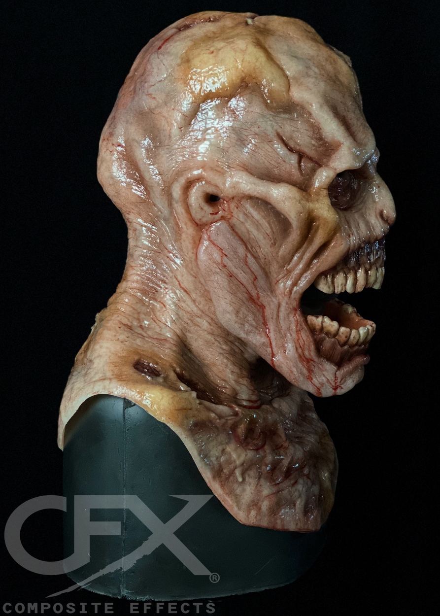 The Scourge is designed with an enlarged jaw feature and additional under the jaw strapping to allow the wearer to over exaggerate its movement and get an impressive – and creepy! – range of motion! Balaclava is recommended.